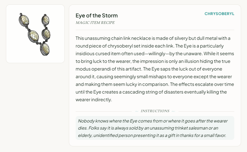 But wait, we're not done! We are also planning on bringing into the Natural World Library app the contents of our Alchemist's Toolkit: a system-neutral ruleset for potion-making, magical reagents, and alchemical processes. For now, you can get a PDF copy of the toolkit on DriveThruRPG. We'll keep adding content both to that PDF and to the web app version!